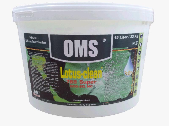 OMS ECO-Sil 788 MC Super is a new generation of self-cleaning technology with very pronounced repelling effect . This new resin formulation is developed based on "Lotus-Clean" micro-texture technology. In combination with the in-organic resin co-polymer,OMS ECO-Sil 788 MC Super is a very effective finish to control dirt accumulation on building exterior. Rain action triggers the Permanent "Lotus-Clean" self-cleaning mechanism on the paint film and keeping the façade cleaner longer. OMS ECO-Sil 788 MC Super finish repels rain water and keeps building interior dry.