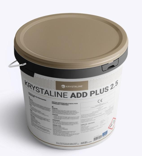 Krystaline Add Plus 2.5 is a self-healing C-S-H technology admixture used to waterproof concrete, reduce shrinkage cracks, protect reinforcing steel, and increase concrete durability. Krystaline Add Plus 2.5 can be used for the treatment of concrete structures and against water seepage, shrinkage and cracking, chemical attack, and corrosion of reinforcing steel.