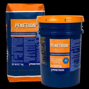 PENETRON® is a surface-applied, integral crystalline waterproofing material, which waterproofs and protects concrete in-depth. It consists of Portland cement, specially treated quartz sand and a compound of active chemicals.